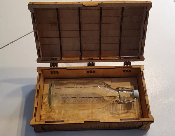 Eine persönliche Botschaft, versteckt in einer charmanten Flaschenpost, umhüllt von einer handgefertigten Schatztruhe - das perfekte Geschenk für unvergessliche Momente!